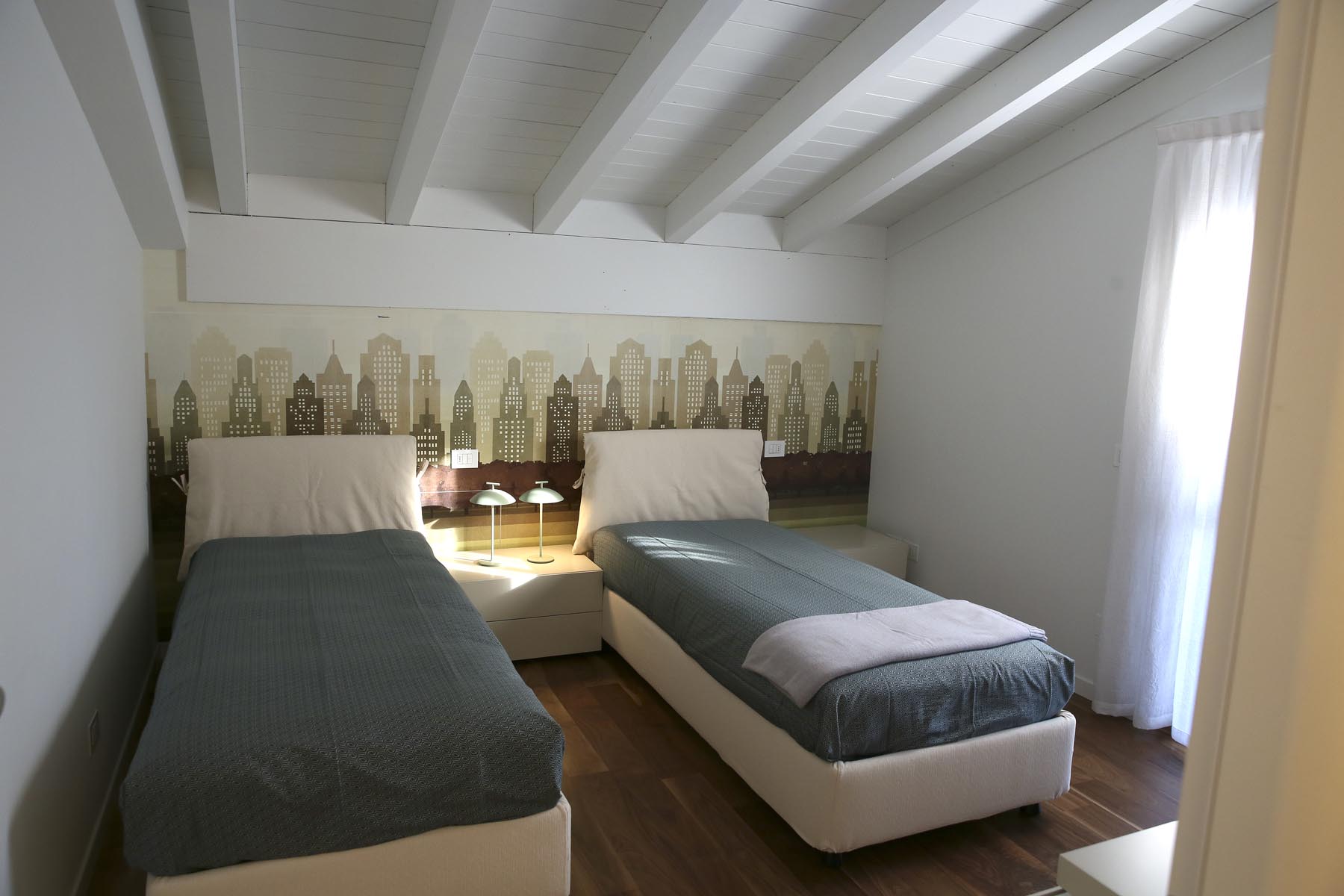 Il primo intervento è stato quello di suggerire la verniciatura delle travi dei soffitti, sia della cucina che della zona notte di colore bianco opaco gesso a poro aperto così da rendere più luminosi gli spazi.